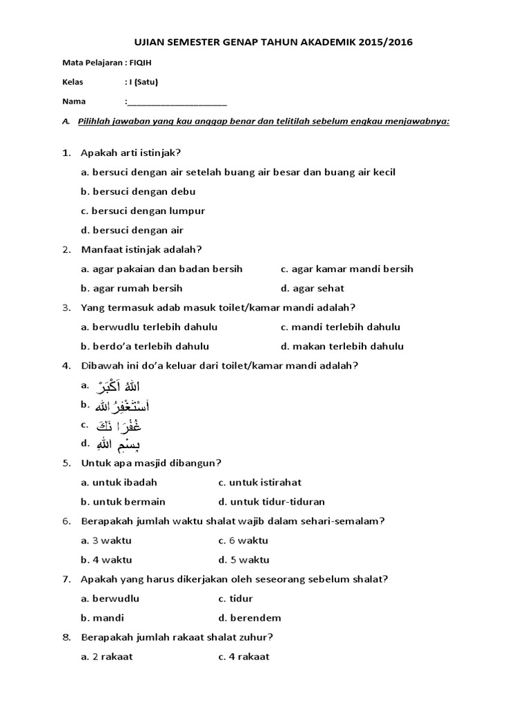 Mid semester, atau yang sering disebut ujian tengah semester, merupakan momen krusial bagi setiap siswa. Ini adalah tolok ukur sejauh mana pemahaman materi yang telah dipelajari selama paruh pertama semester. Bagi siswa Kelas 3 Madrasah Ibtidaiyah (MI) atau sekolah dasar yang mendalami mata pelajaran Fiqih, persiapan yang matang untuk menghadapi soal mid semester adalah kunci untuk meraih hasil yang optimal. Fiqih, sebagai ilmu yang mempelajari hukum-hukum Islam praktis, mencakup berbagai aspek kehidupan seorang Muslim, mulai dari ibadah hingga muamalah. Oleh karena itu, pemahaman yang kuat terhadap materi Fiqih Kelas 3 Semester 1 akan menjadi fondasi penting bagi kelanjutan studi agama mereka.